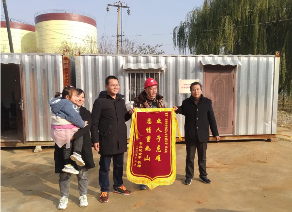 “救人于危難,恩情重于山”——126日一大早,山東宏河百利礦業(yè)有限公司院內(nèi)鞭炮聲陣陣,鄒城市嶧山鎮(zhèn)西鞏村靳慶斌全家為公司員工茌良朋送來了“救人于危難,恩情重于山”的錦旗。