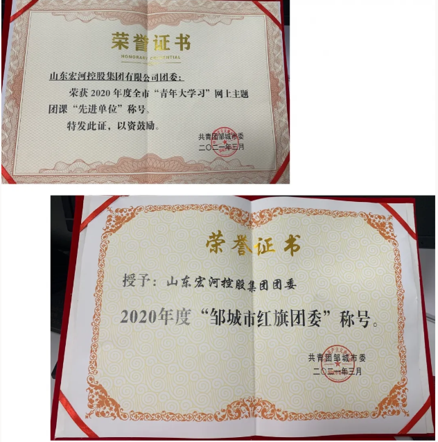 其中,宏河集團(tuán)團(tuán)委榮獲:2020年度鄒城市紅旗團(tuán)委、鄒城市2020年度“青年大學(xué)習(xí)”網(wǎng)上主題團(tuán)課先進(jìn)單位。宏河集團(tuán)以下七名同志,獲鄒城市2020年度“青年大學(xué)習(xí)”網(wǎng)上主題團(tuán)課學(xué)習(xí)標(biāo)兵。