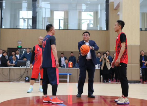 集團(tuán)黨委書記、董事長張文,為2021第二屆“宏河杯”籃球賽開球