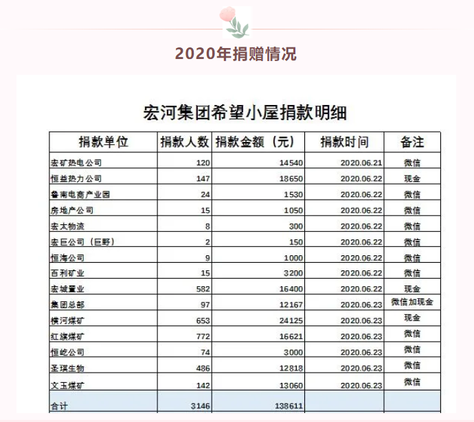 “希望小屋”是共青團山東省委、山東青年聯(lián)合會、山東省青少年發(fā)展基金會共同發(fā)起的困境兒童關愛項目,自2020年6月啟動發(fā)起募捐倡議以來,受到全社會廣泛關注和支持。2020年集團共籌集到愛心捐款138611元,兩年來捐款所得款累計20萬余元,統(tǒng)一定向給鄒城市希望小屋項目建設。集團廣大干部職工齊心協(xié)力從“希望小屋”出發(fā),以“為群眾辦實事”的初心責任,匯聚愛心傳遞對困境兒童的關愛,幫助更多有需要的孩子改善現(xiàn)狀走出困境,健康成長為祖國的棟梁之才。