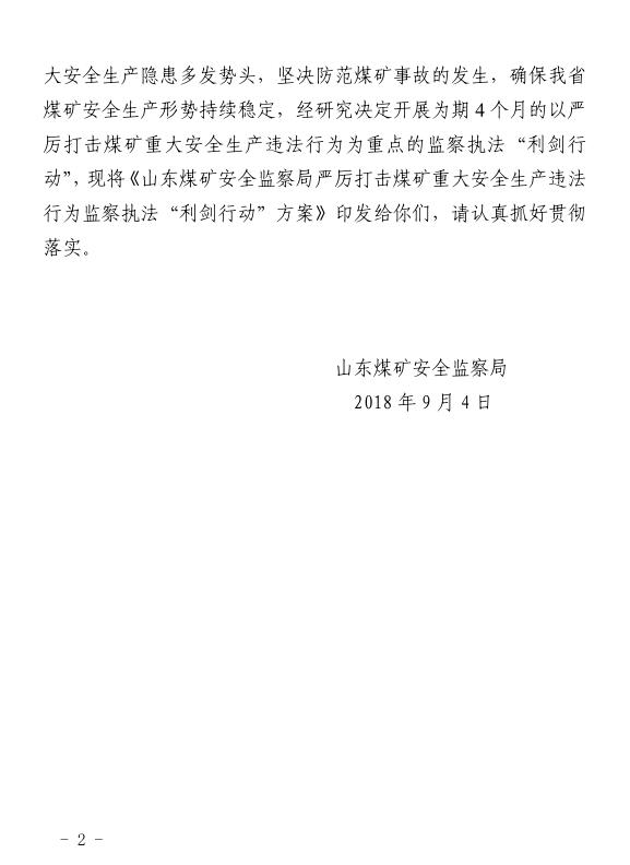 關(guān)于印發(fā)《嚴厲打擊煤礦重大安全生產(chǎn)違法行為監(jiān)察執(zhí)法“利劍行動”方案》的通知